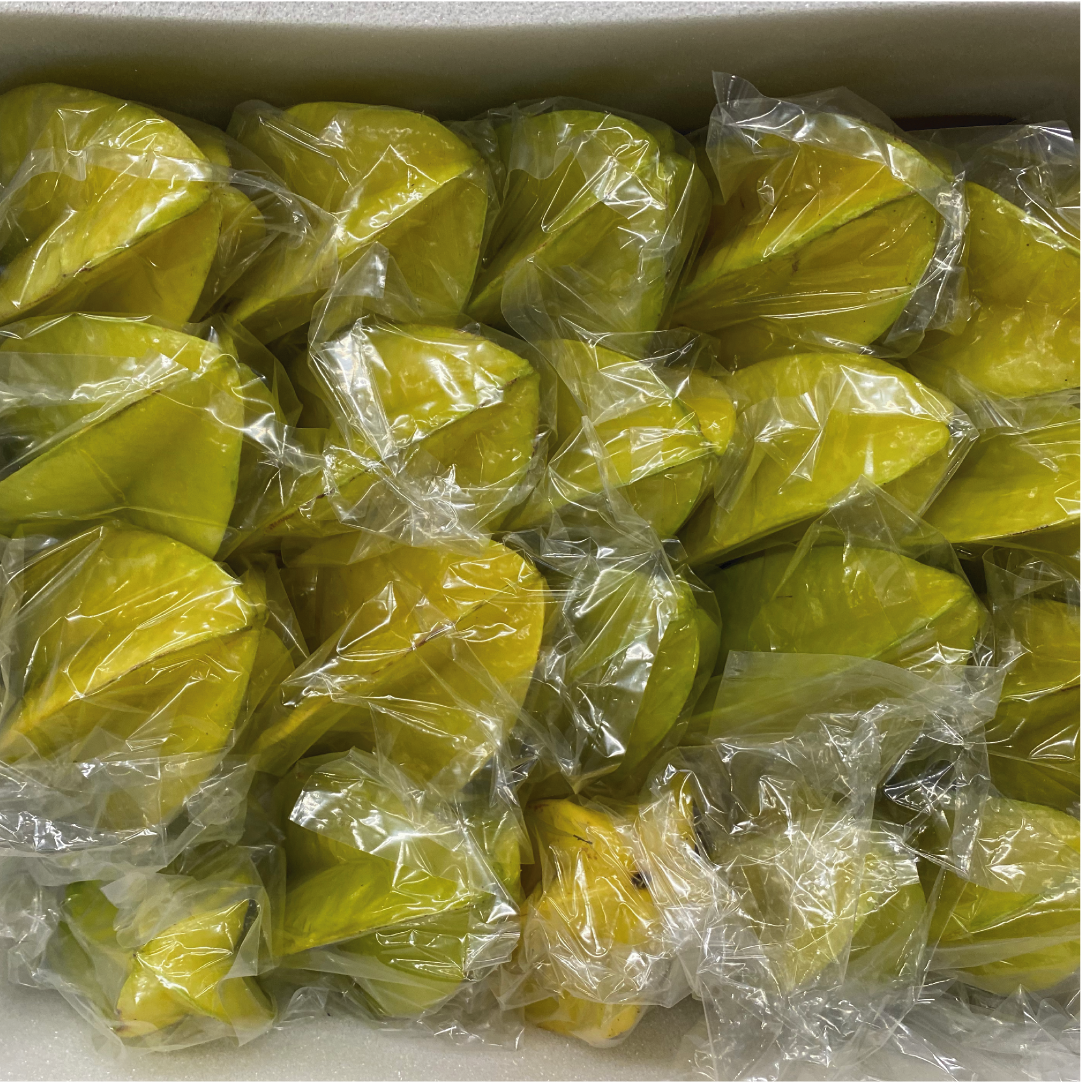 La Carambola è il frutto dell’Averrhoa Carambola una pianta appartenente alla famiglia delle Oxalidaceae, conosciuta nei paesi anglofoni con il termine di Star Fruit, frutto stella, per la forma caratteristica del frutto quando viene tagliato a fette. Infatti se si taglia il frutto a fette, la sezione che ne risulta si presenta come una stella, gialla, dalla consistenza solida ma acquosa al tempo stesso. E del frutto si consuma tutto: sia la polpa che la buccia.